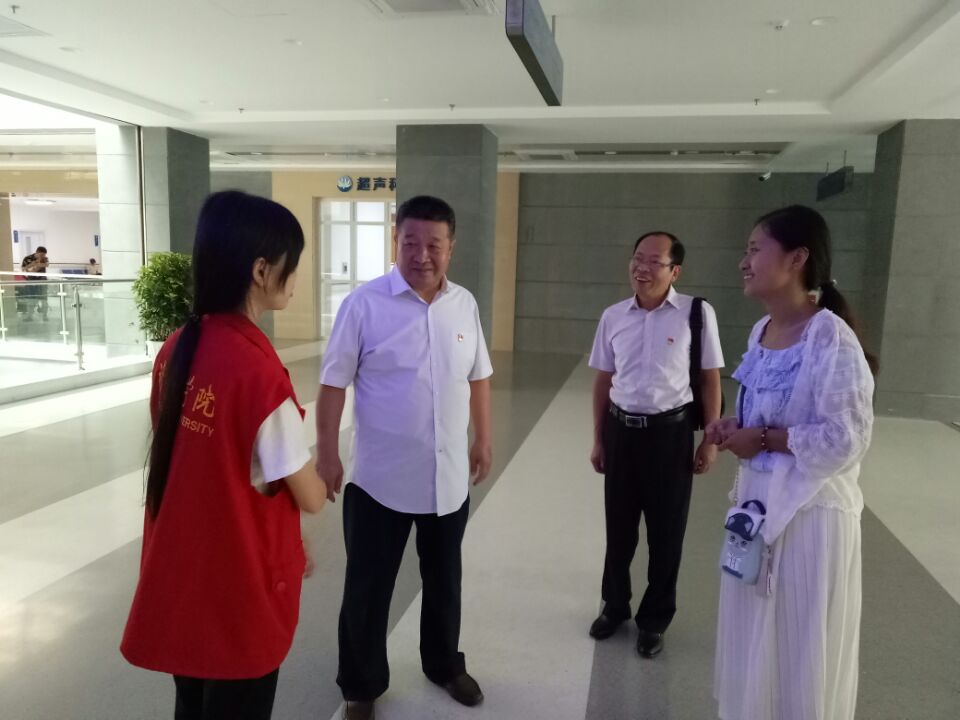 上午九点半,许昌学院乐竞党总支书记王国志、党总支副书记盛双合和团总支书记陈化宇来到市立医院慰问志愿者,给病人送去关怀,为志愿者送上了解渴的绿茶,不仅滋润了志愿者的心灵,更鼓舞了志愿者的士气;另外给家长送上了暖心的安慰,表达了“风雨再大,你我同在”的精神。最后,老师们在康复科主任李凯的带领下,参观了康复科、心理行为科和其他科室。了解了志愿者们的工作之后,老师们给予了志愿者们极大地肯定,并对志愿者们和医院之间爱的联系表示了支持。就这样,大家在一片爱的氛围中结束了今天的志愿活动。