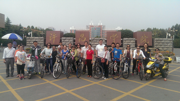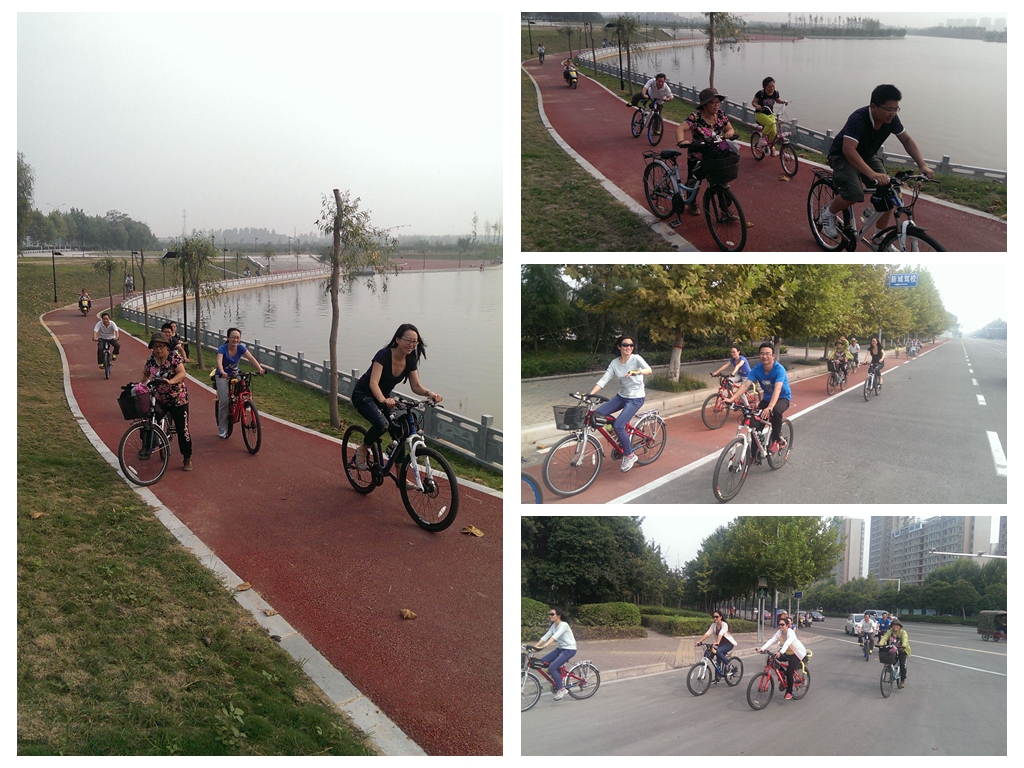 老师们在学院党总支书记许涛的带领下,沿学院河一路向北。清流环城,人水共生,加之许昌新区的发展速度让大家眼前一亮,在愉快的骑行中很快到达了目的地,秋日的阳光洒在北海水面上,微风吹起层层涟漪。亭台楼榭、绿树掩映,漫步其中既能欣赏到小桥流水的韵味,又能感受到现代化的园林艺术。