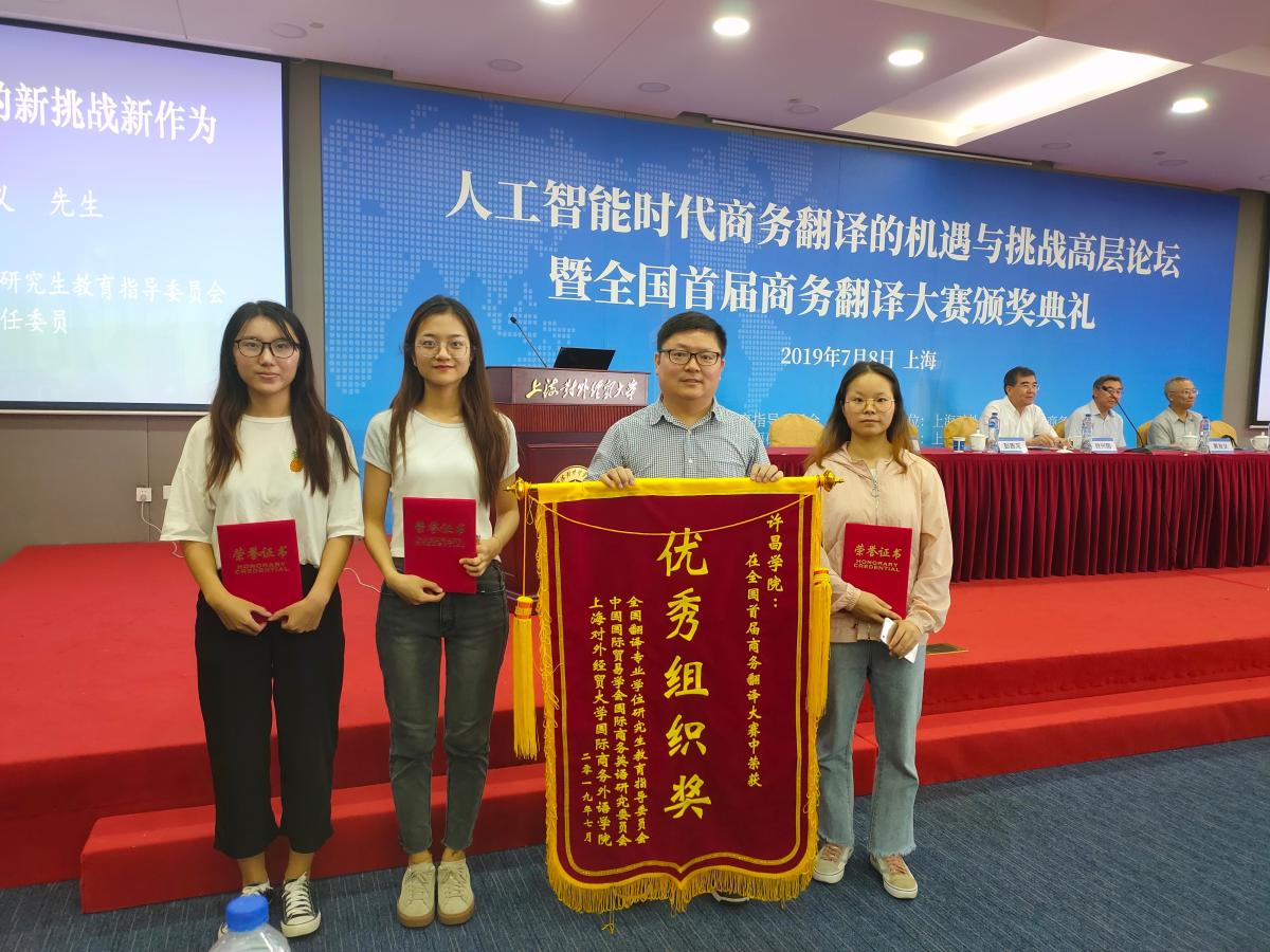 为了更好地满足新时代对高水平商务翻译人才的需求 进一步提高我国商务翻译人才培养质量,全国翻译专业学位研究生教育指导委员会,中国国际贸易协会,国际商务英语研究委员会与上海对外经贸大学共同举办首届全国商务翻译大赛,大赛初审和评审工作已顺利完成,2019年7月7日在上海对外经贸大学松江校区举行决赛,7月8日举行人工智能背景下商务翻译的机遇与挑战高层论坛及全国首届商务翻译大赛颁奖典礼。