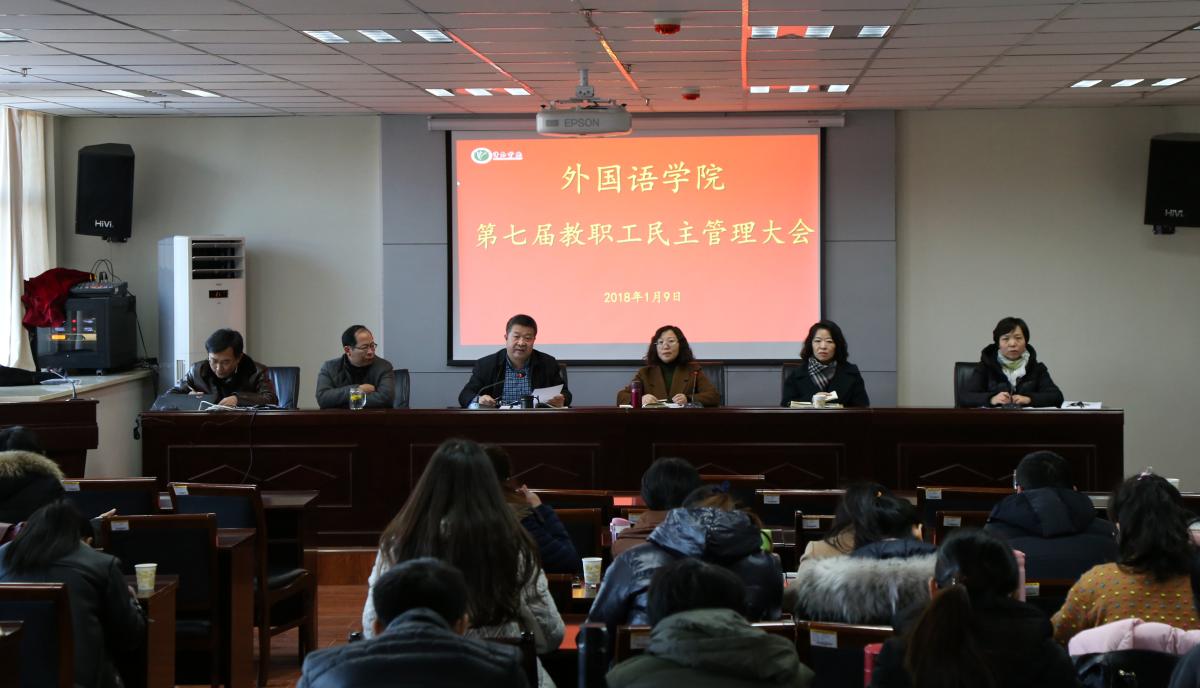 2018年1月9日下午,乐竞第七届教职工民主管理大会成功召开,学院教职工生80余人参加大会。会议由党总支副书记盛双合主持。
