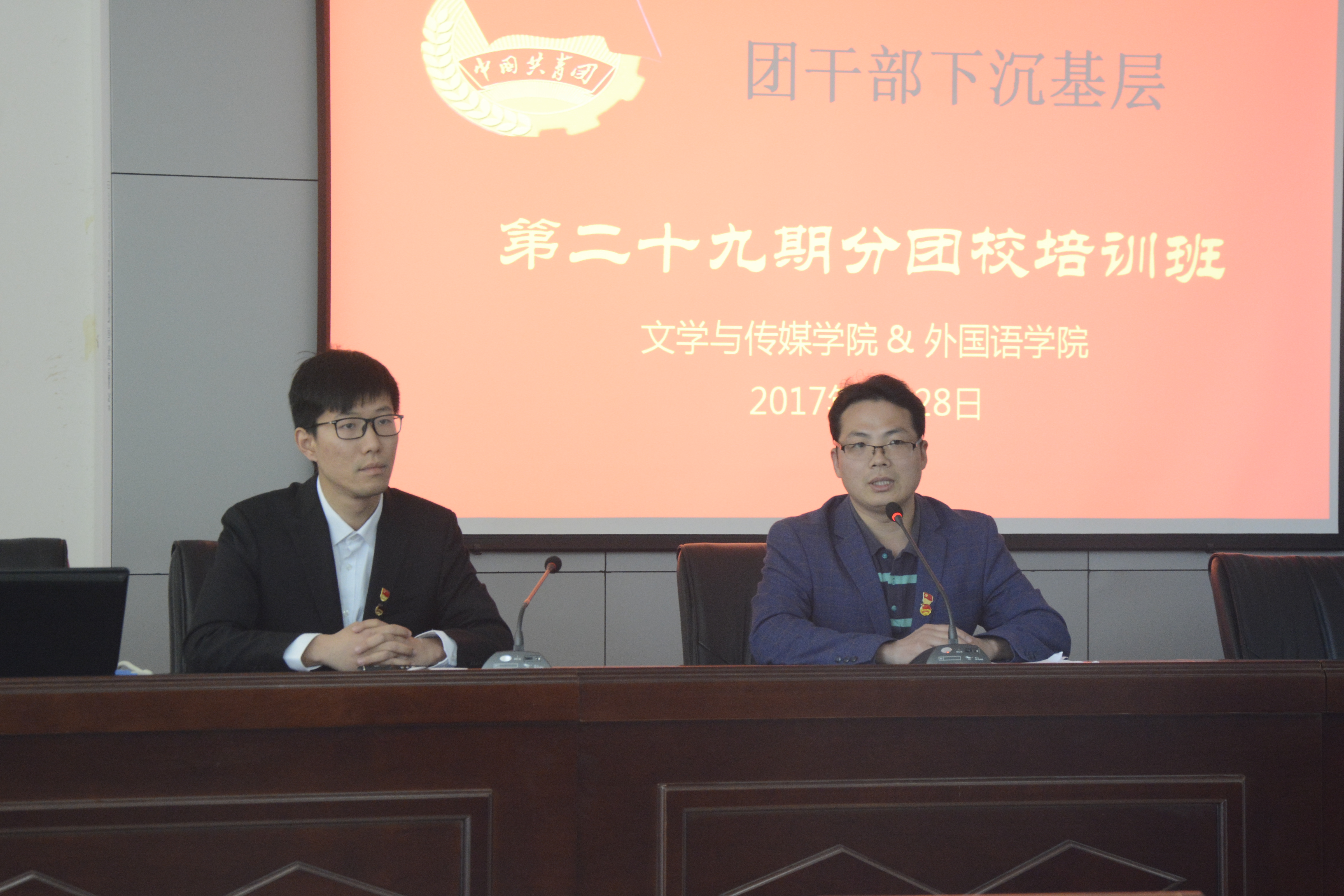 根据校团委“团干部下城基层”活动安排,4月28日下午,乐竞在1917会议室联合举办分团校培训活动,乐竞团总支书记陈化宇、文学院团总支书记訾冉出席活动,两个学院参加第29期分团课培训的同学参加了活动。