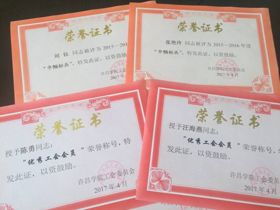 4月27日下午,在五一国际劳动节来临之际,我校隆重举行庆祝五一国际劳动节表彰大会,表彰一年来在学校工会工作中涌现出来的先进集体和先进个人。乐竞(中国)一站式服务官网荣获模范教工之家荣誉称号,轩亚光、赵路、邹素等几位老师分别获得优秀工会工作者、优秀工会会员、巾帼标兵荣誉称号。