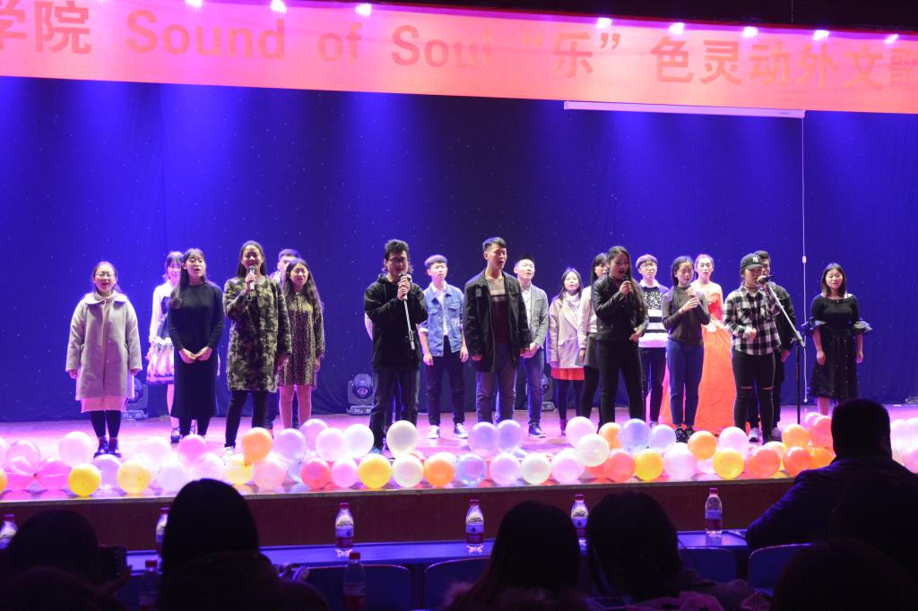 12月 1日晚上7点,乐竞(中国)一站式服务官网在大学生活动中心举行“Sound of Soul乐色灵动”外文歌手大赛决赛,担任本次比赛的评委老师有音乐舞蹈学院宋睿龙博士、日语外教泽村贵志、乐竞(中国)一站式服务官网陈化宇、李莹老师,15级、16级全体学生观看了本次比赛。