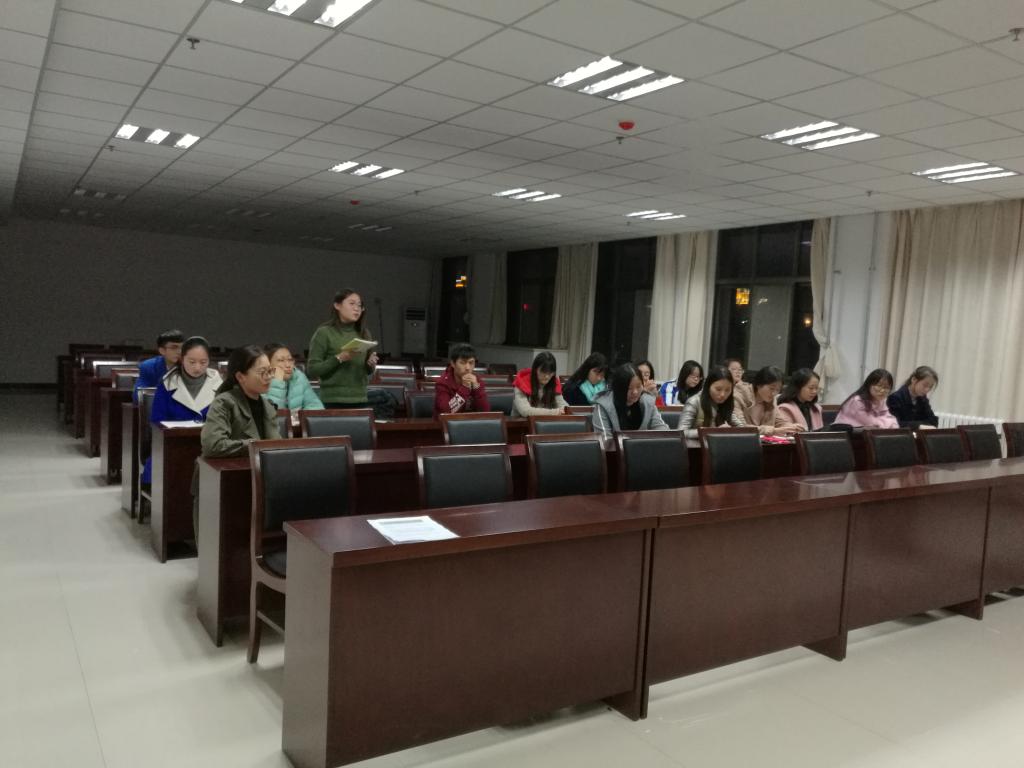 11月11日上午,由党总支副书记盛双合主持本期培训班的结业典礼。入党积极分子培训班副班长熊旺旺作为学员代表,对本次培训活动做了详细的总结发言,从“党课学习,党校宣传,党小组讨论,党小组活动”回顾培训经历,分享学习心得。最后盛双合副书记对培训情况作了简要总结,希望入党积极分子通过此次培训,更加坚定理想信仰,努力学习,不但提高理论水平与政治素养,争取早日加入中国共产党。