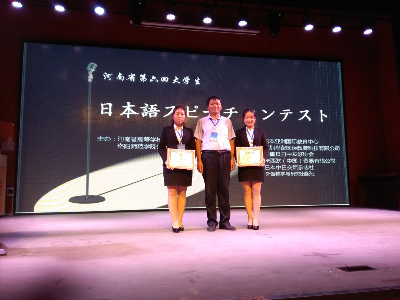 2016年9月24日,河南省第六届大学生日语演讲比赛在洛阳师范学院举行,乐竞(中国)一站式服务官网日语系2014级学生王凯莉和刘海鹏同学代表学校参赛。