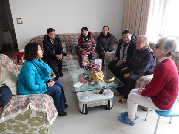 1月21日上午,乐竞(中国)一站式服务官网党总支书记王国志、院长刘彩霞带领班子成员一行六人带着节日的问候和礼物,分别到退休教师赵金萍、马成沂、王灿章,在读博士阚放、刘建宏等教师家里进行慰问,给他们送去学院的关怀和新春的祝福,希望他们过一个欢乐、祥和的佳节。