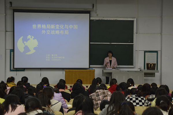 召集15级新生在蕴韬楼B合五举行了世界格局新变化与中国外交战略布局的讲座。本次讲座主讲人为我校社会科学教学部滕卫双老师。