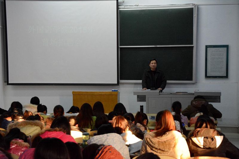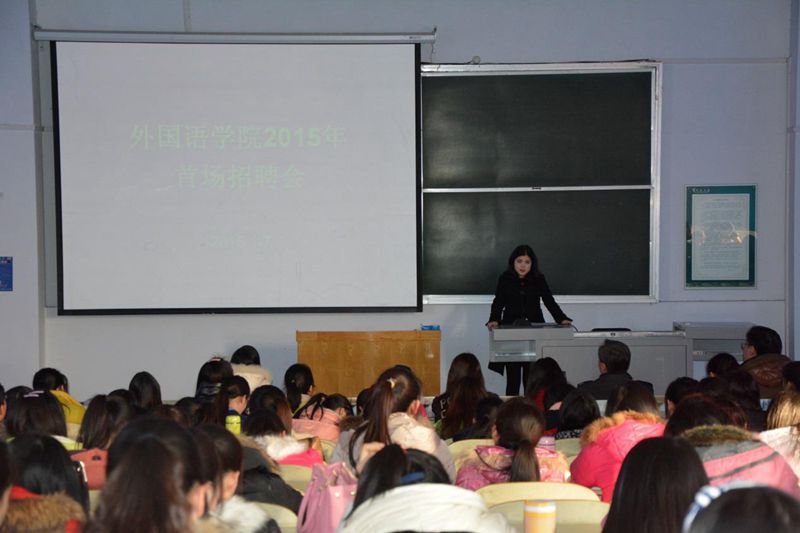 为切实做好乐竞(中国)一站式服务官网毕业生就业工作,努力构建毕业生与用人单位的交流平台,积极为社会输送应用型人才。1月7日下午3:00我在于B合六教室举办了2015年首场招聘会。党总支书记许涛、团总支书记李想、合肥教外教育咨询有限公司商务总监金环等企业代表出席了本次会议,11级毕业生和13级学生代表参加了本次招聘会。