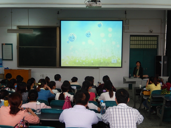 9月24日上午,许昌市学府街小学高级教师李晓华应邀为我校“国培计划(2014)”小学英语项目培训学员作题为《同课异构》的讲座。