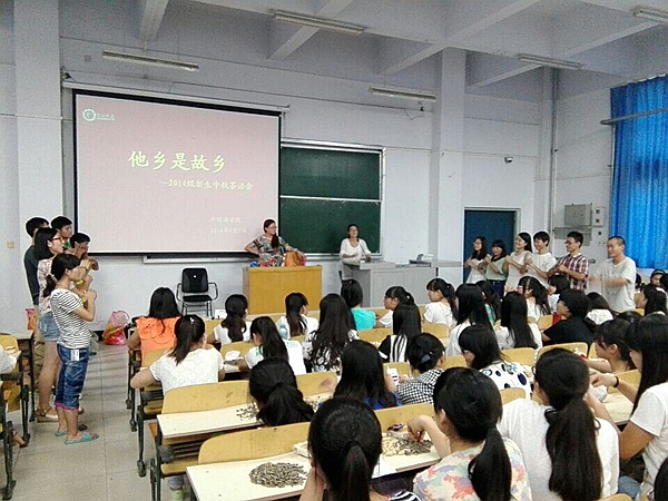 下午3点,乐竞(中国)一站式服务官网2014级全体新生在A合四教室举行以“他乡是故乡”为主题的中秋茶话会。