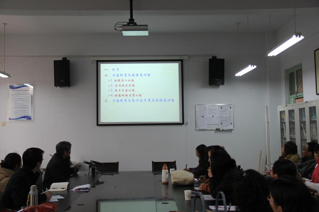 最后,张教授结合自身多年来的学术研究经历,针对广大青年教师如何做好语言学研究,提出了宝贵的指导意见。大家一致认为,张教授的讲座内容全面、分析透彻,语言诙谐幽默,令全体老师受益匪浅。