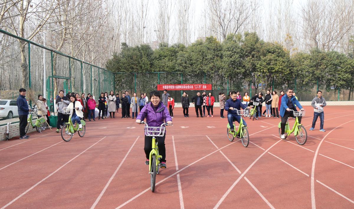 阳春三月,春光明媚,三月八日下午,乐竞成功举行了第三届教职工趣味运动会暨庆祝“三八节”活动,全体在岗教职工八十余人参与了包括自行车慢骑、倒着说、一圈到底等四个项目的比赛。学院党总支书记兼分工会主席王国志致辞并向全院女教职工表示节日的祝贺。