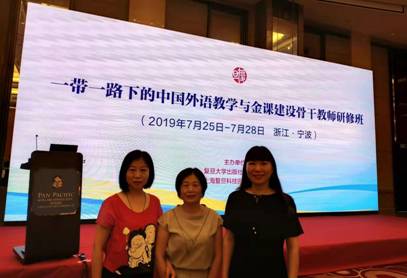 2019年7月25至28日,乐竞(中国)一站式服务官网教师李丽娜、刘丽丽和李蕾应邀参加了一带一路下的中国外语教学与金课建设骨干教师研修班。研修班由复旦大学出版社携手同济大学沈骑教授及团队在宁波大学举办,全国各地多所本科高校300多名大学的专家、学者及大学英语教师参加了本次会议。
