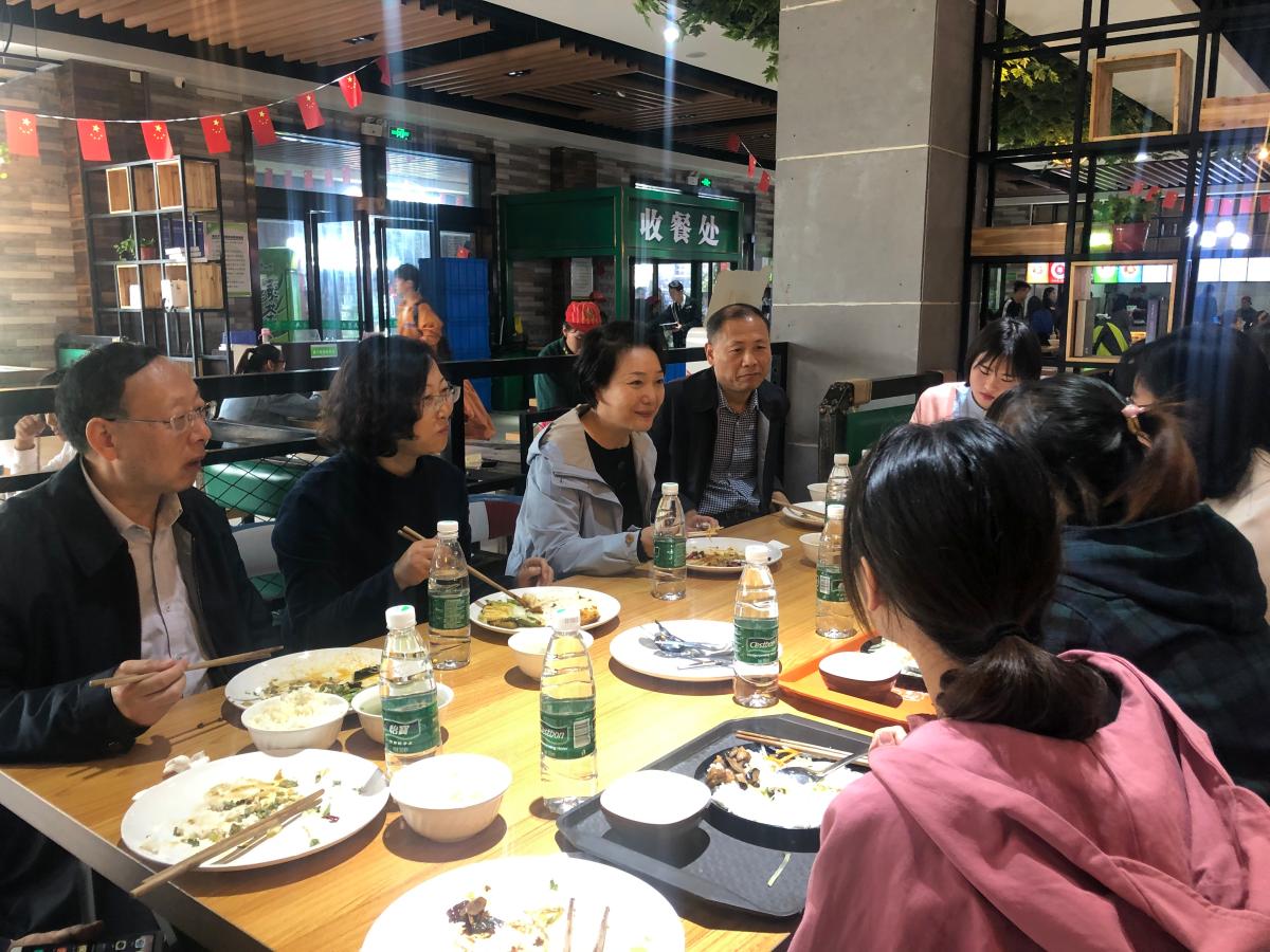 10月23日中午,许昌学院副院长黄怡俐在教务处处长周颖杰、图书馆馆长吴长增及乐竞(中国)一站式服务官网院长刘彩霞陪同下,在沁园春餐厅二楼与乐竞(中国)一站式服务官网师生共进午餐。
