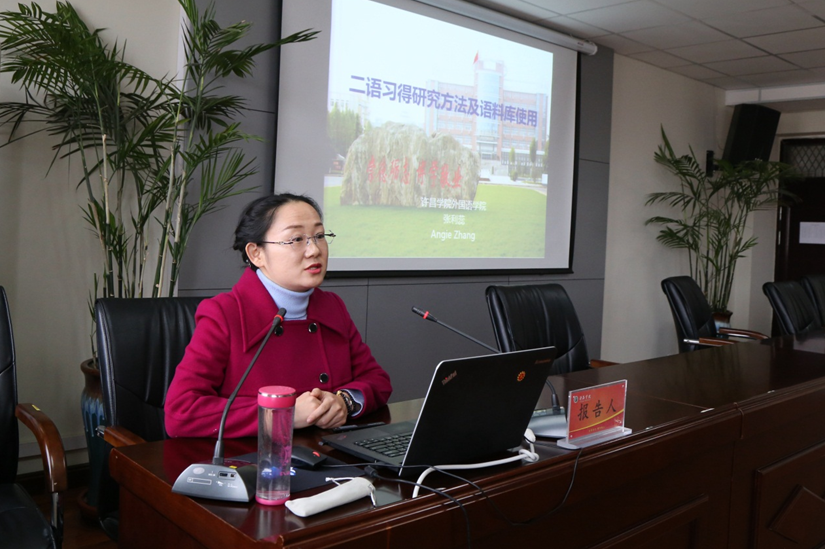 张利蕊博士讲座的题目为“第二语言习得研究方法及语料库的使用”,她结合自己的博士论文选题与已发表论文的撰写过程,为老师讲解了外语论文写作中选题方法、研究工具与语料库使用对于论文数据分析的重要性,她鼓励教师在论文撰写中要有精品意识,努力提高论文的质量,并在高层次的外语期刊上发表,为自己学术发展奠定坚实的基础。