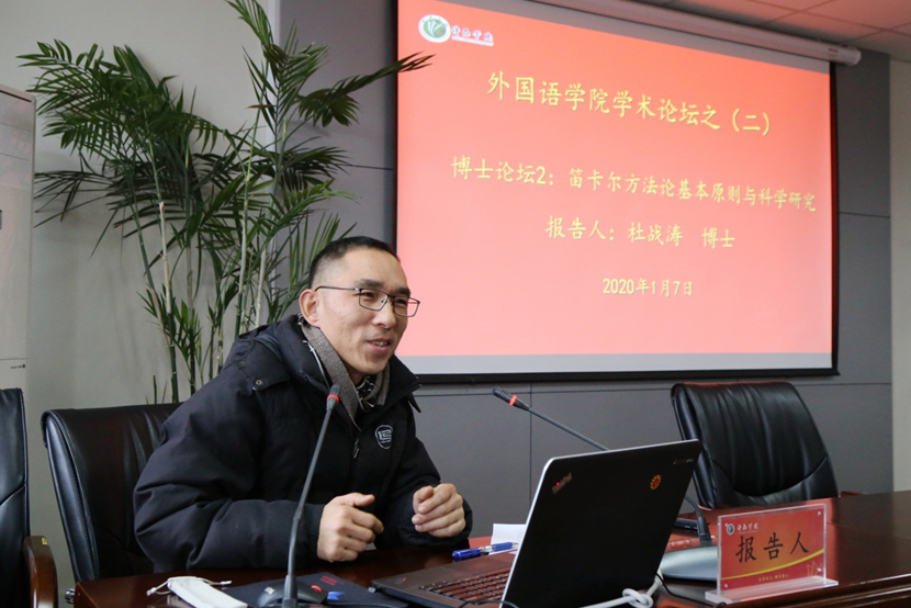 杜战涛博士讲座题目为“笛卡尔方法论基本原则与科学研究”,他从科研研究的基本范式problem-solving谈起,主讲做研究要有问题意识,并准确地界定问题。然后,具体讲解了笛卡尔方法的范式与基本步骤,以现实生活中联系紧密的事件为例,为老师们做了生动的示范。