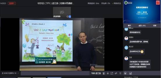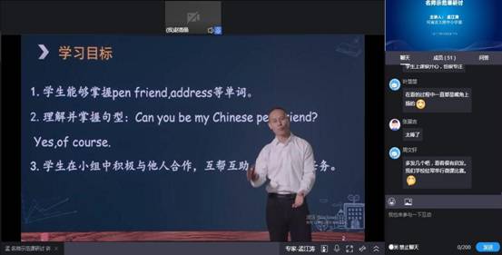 6月5日下午,基于上午的两节观摩课,孟老师与来自省内各地的学员们在线进行了互动,在热烈的气氛中开展教学研讨。孟老师分享了自己不同时期的教学片段,让参加培训的老师感受到他在教学生涯中也不断成长。他鼓励老师们要勇于尝试,只有经过不同的历练才能不断成长。他从自己的教育经历出发,讲述自己从教的乐趣和幸福。