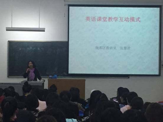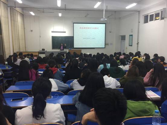 2017年11月2日晚,许昌市中学英语教研员张慧君老师为乐竞(中国)一站式服务官网英语师范本科生做了题为《英语课堂教学互动模式及课例研讨》的讲座。参加本次讲座的有2015级教本、2016级教本、2017级专升本共计150余名学生。