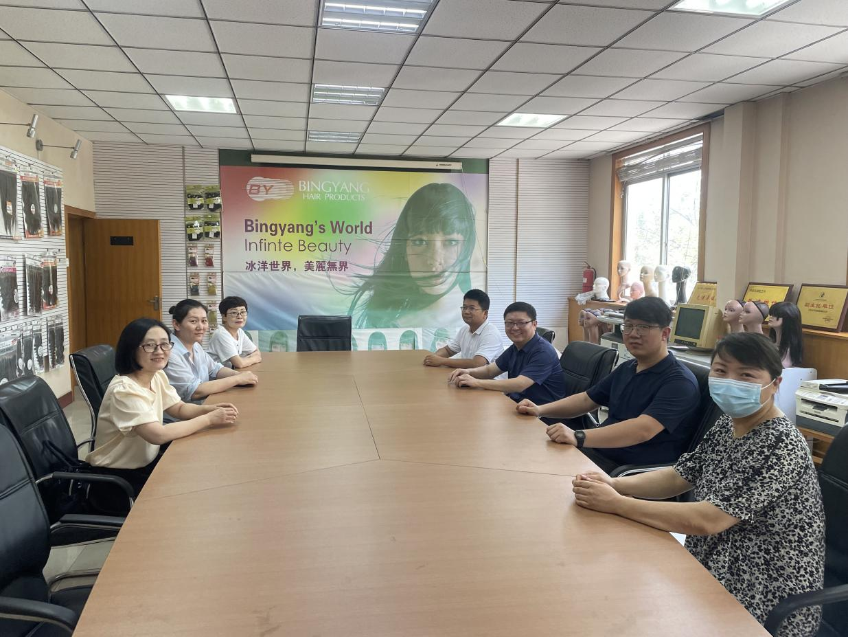 商务英语教研室一行受到了冰洋公司的创始人白振杰先生的热情接待。白振杰首先对许昌冰洋实业有限公司的发展历程、海内外业务等进行介绍,并强调了校企合作在培养学生实践能力和促进产学结合方面的重要性。他表达了与外国语学院合作的意向,希望能为学生提供创业平台,并借助许昌冰洋实业有限公司的资源和经验,培养学生的创新意识和创业能力。他认为,通过与高校合作,不仅可以为学生提供实践机会,还能够吸收新鲜的思维和创新的理念,推动企业的发展。在会议的后半部分,双方进行了更为具体的讨论。付一凡老师询问了冰洋公司的业务领域和人才需求,并表示高校可以提供相关的人才培养和技术支持。高现伟老师则着重介绍了商务英语教研室的教学特点和学生的优势,希望能够通过校企合作,让学生更好地将所学知识应用到实践中。随后,商务英语教研室一行参观了冰洋公司的假发生产线,仔细观察了生产过程,了解了产品的质量控制和市场销售情况,与冰洋公司的工作人员进行了深入交流,探讨了假发行业的现状和发展趋势。