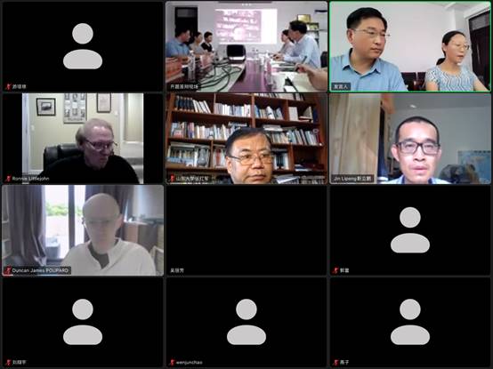 答辩委员会由河南大学外语学院刘泽权教授、张丹丹教授、香港中文大学翻译系Duncan James Poupard副教授、许昌学院文史与传媒学院尤建设教授组成,刘泽权教授担任答辩委员会主席。参加会议的还有许昌学院科研处副处长马洪伟教授、许昌学院乐竞刘彩霞教授、曾尔奇教授、刘向辉教授,以及项目组成员美国贝尔蒙特大学Ronnie Littlejohn教授和Joan Li副教授、山东大学(威海)文化传播学院张红军教授、四川美术学院实验艺术学院靳立鹏副教授和许昌学院乐竞邹素副教授,以及翻译系的教师。本次开题答辩交流会由许昌学院乐竞刘彩霞院长主持。