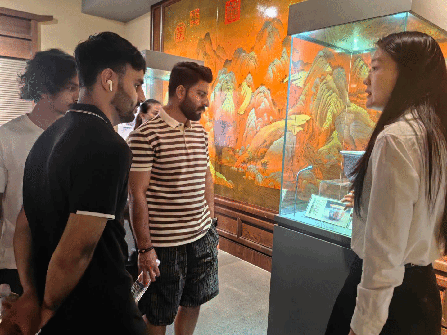 为增进海外留学生对中国传统文化的了解,特别是感受河南本土非遗的独特魅力,许昌学院乐竞钧瓷国情教育基地项目组于6月28日组织了一场别开生面的文化体验活动。在刘立胜等项目组成员的带领下,来自俄罗斯、巴基斯坦等国的亚历克斯(Alex)、马力克(Malik)、乌迈尔(Umar)等8名留学生与中方师生共同探访了禹州钧官窑址博物馆(河南钧瓷博物馆),开启了一段触摸千年窑火、感知华夏瑰宝的文化之旅。