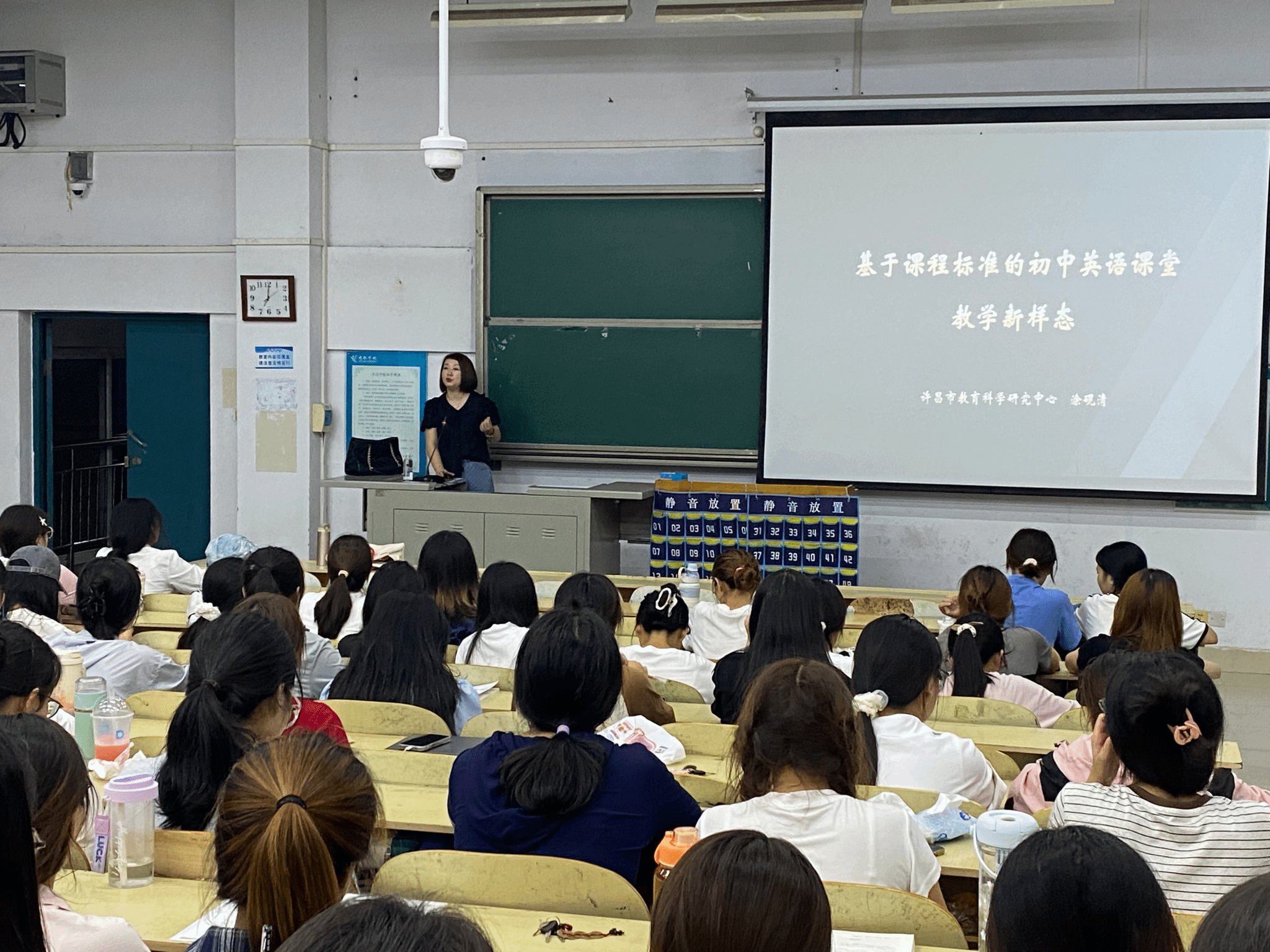 2025年9月15日晚上19:00点至21:00点,许昌市基础教育教学研究室涂砚清老师应邀在B合五教室为2023级英语专业学生进行了一场题为“基于课程标准的初中英语课堂教学新样态”的讲座。涂砚清老师是许昌市教育教学研究中心小学、初中英语教研员,河南省教育厅学术技术带头人。荣获河南省优质课大赛一等奖、河南省基础教育教学研究项目优秀成果一等奖,主持多项省、市级重点课题,发表多篇学术论文。并指导多名教师在省市优质课比赛中获一等奖。本次讲座中,涂老师首先对《义务教育英语课程标准》(2022年版)进行了解读,阐释了课程性质、课程理念、课程目标、课程内容、教学建议等核心内容;随后分析了人教版新编初中英语教材的结构和特点;并以许昌市两位优秀英语教师的教学设计为例,说明了如何在新课标的引领下,有效开展单元整体教学设计和应用英语学习活动观进行教学过程设计。涂老师的讲座内容丰富,课例多样,帮助学生们更好地理解了新课标的核心概念以及新课标落地的具体举措。