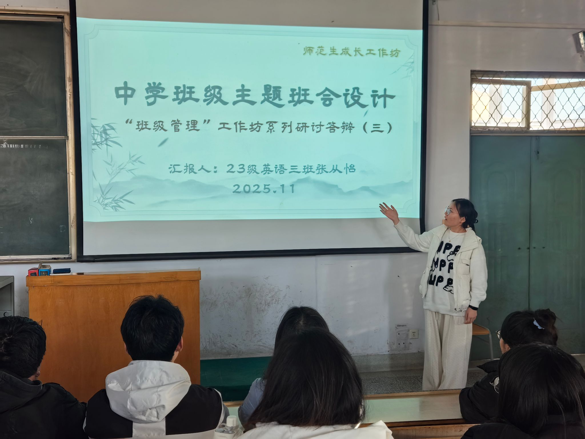为提升学员班级活动设计与组织能力,助力未来教育教学实践,2025年11月10日——11月15日,许昌学院乐竞班级管理工作坊成功举办2025系列研讨答辩活动。本次答辩聚焦中学班级主题班会设计,学员们以扎实的专业素养和创新的设计理念展现了良好的实践潜力。