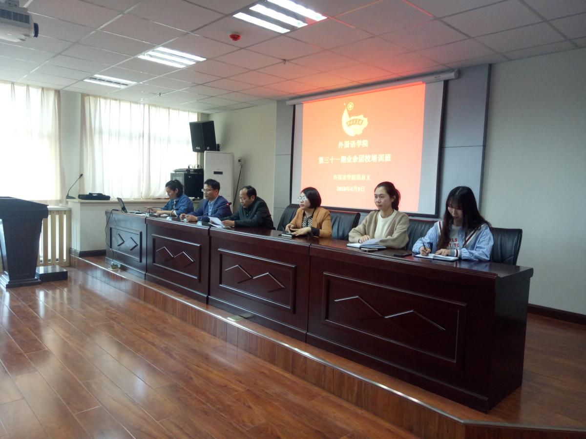 4月8日下午,外国学院第三十一期业余团校培训开班仪式在文综楼1917会议室举行。乐竞(中国)一站式服务官网党总支副书记盛双合、团总支书记陈化宇、全体辅导员老师以及第三十一期团校学员参加了本次会议。