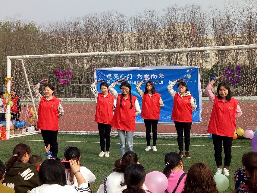 乐竞青年志愿者协会与许昌儿童医院在我校羽飞田径场开展关爱自闭症儿童特色志愿活动
