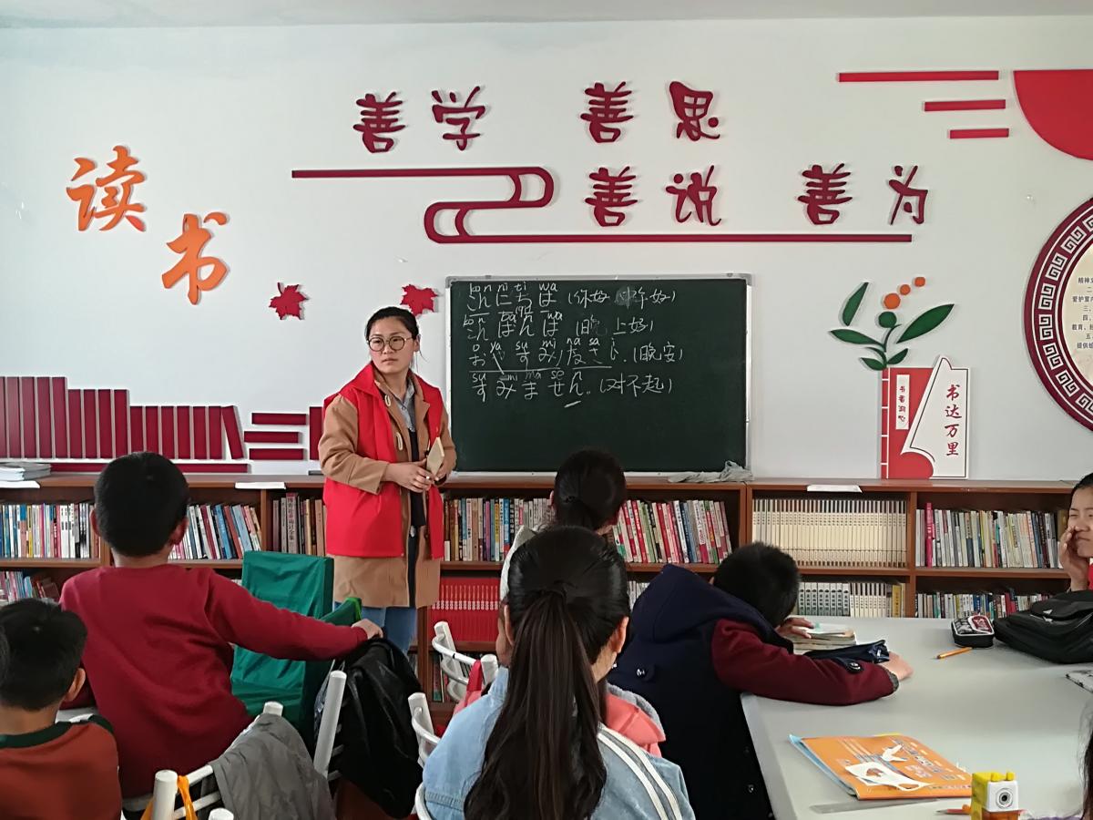 春风春雨,润物无声。志愿者也在不断的创新教学方法,提高学生的上课积极性,以达到“润物无声”的效果。现在,国家大力宣扬学习中华优秀传统文化,因此志愿者在《论语》《弟子规》的教学基础上,又新推出学习歇后语。歇后语是中国劳动人民自古在生活实践中创造的一种语言形式,反映了华夏民族特有的风俗传统和民族文化,寓意深刻。学习歇后语不仅能让学生从中体味到劳动人民的智慧,而且能提高学生学习兴趣。风趣形象的歇后语充分吸引了学生的注意力,课堂上不时地传出阵阵清脆的笑声。有时候讲到熟悉的歇后语时,志愿者说上一句,孩子还能接出下一句。志愿者在服务中既要传播传统文化,也要放眼国际。志愿者不仅教了学生《论语》《弟子规》也教了学生一些简单的日语和英语。虽然孩子们读的不是特别标准,但还是努力的模仿志愿者的发音。志愿者看着学生们认真的样子,不厌其烦地教了一遍又一遍。但是,奇怪的发音总能引得志愿者的捧腹大笑。春意暖暖,爱亦暖暖。有人说:“只有深入人心的教育才是好的教育”,志愿者做到了。活动中有一个孩子的英语基础非常差,志愿者为了孩子更好的学习英语,又重新将26个英文字母教了一遍,每个字母又有相应的单词,更能方便记忆。采取因材施教的方法,孩子爱上学习,在学习感到快乐,这也是让志愿者开心的事情。