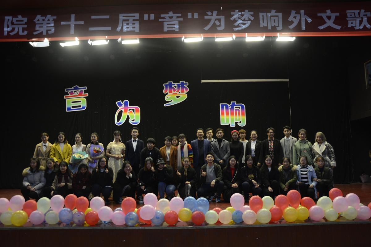 12月2日下午6点,第十二届外语文化节 “音为梦响” 外文歌手大赛在大学生活动中心成功举办。校团委陈用山老师、外教泽村贵志、乐竞陈化宇、汪海燕、李佳琪老师以及学校大学生合唱团团长、往届歌手大赛冠军等担任评委,乐竞2017级全体同学及其他学院的部分同学观看了此次大赛。