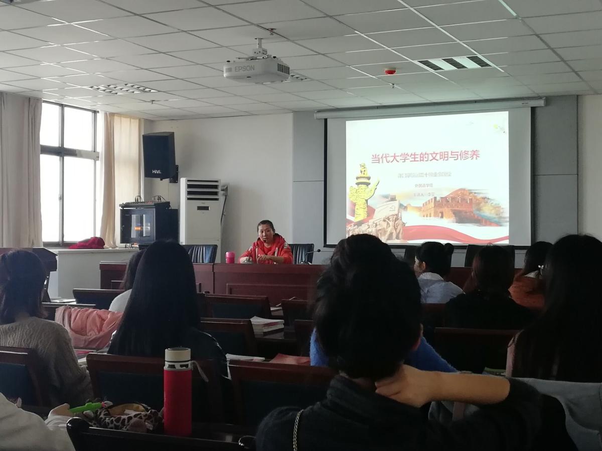 10月27号下午,在文综楼1917会议室,李莹老师为乐竞(中国)一站式服务官网学生团员干部做了主题为“当代大学生的文明与修养”的专题团课,乐竞(中国)一站式服务官网入党积极分子参加了本次活动。