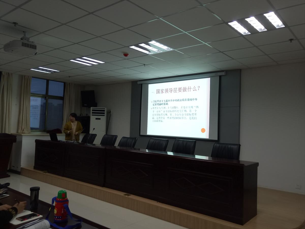 牛怡晨老师重点分析了十九大中的关键词、我国的“四个伟大”“十大成就”、党的初心和使命及中国特色现代强军战略体系等内容。同时又讲解了“习近平总书记的七年青春岁月”中的知青说,让大家了解当年习近平总书记的艰苦知青生活。
