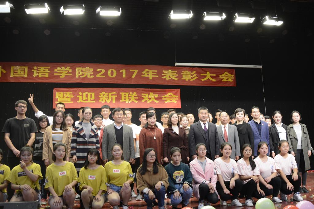 表彰会结束后是精彩的迎新联欢会。充满活力的开场舞《Goodtime》拉开联欢会的帷幕。随后的英韩歌曲串烧让同学们感受到了不同语言文化之间的魅力;舞蹈《青春爱》,充分表现了同学们的青春活力;吉他弹唱《突然好想你》,获得了同学们的热烈掌声;《我爱你,中国》朗诵+美声表演,唤起了同学们对祖国的自豪之情。最后,迎新联欢会在17级全体男生合唱《我相信》中落下帷幕。