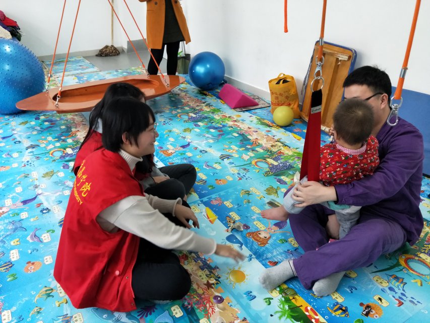 看过了一、二、三楼志愿者们兢兢业业的服务态度,在四楼便看到了志愿者们安抚病痛中的孩子们的身影。被分配到了不同的小科室帮助孩子们转移注意力,减轻治疗时的病痛。和孩子们久别两个多月,一名志愿者们对孩子们非常想念,但是担心自己将感冒传染给孩子,便主动地提出在走廊里向家长们提供服务。屋子内孩子们年龄不同,年龄稍大的孩子在志愿者们的鼓舞下努力的训练着;但不如意的事情总是存在着,小孩子哇哇的哭叫声传遍了按摩室,也总有孩子在志愿者们的用心下 破涕为笑。此时此刻孩子们的一举一动都牵动着志愿者们的心。