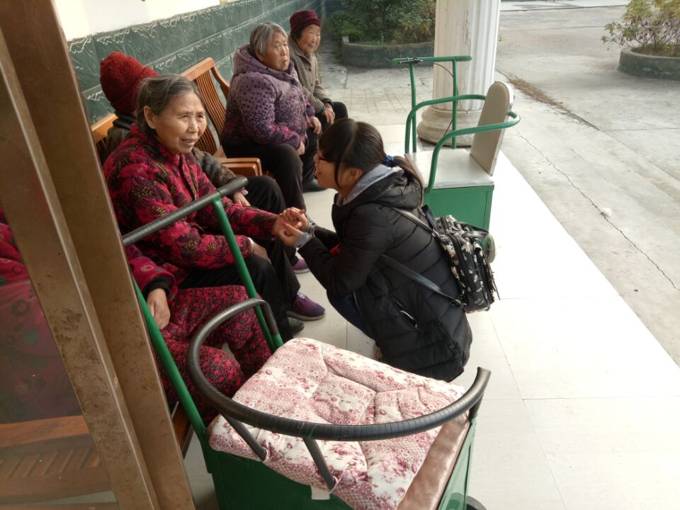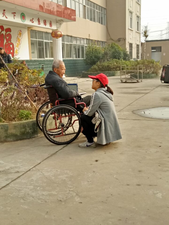 太阳渐渐升高,他们感到很温暖,心里也越来越温暖。走廊里有个老奶奶一直流眼泪,志愿者安慰她她也不说话,后来才知道她不能很好地表达。志愿者们看着老奶奶流泪,心里特别难受,她们懂,眼角的泪水是她的无声的诉说。离别之际,有位老爷爷也哭了,他说从你们来的时候就很激动,这些孩子们跟他聊天他很开心。都说人老了就会像个小孩,其实不然,孩子有时会无理取闹,但老人不会;也不会像成年人,他们想要的很多,而老人的要求很简单,只不过是希望子女多陪他们聊聊天,说说话,这样他们就很满足了。