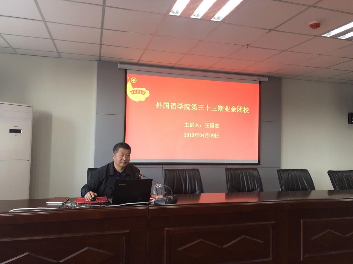 4月9日,乐竞第三十三期业余团校培训开班仪式在文综楼1917举行,乐竞党总支书记王国志为优秀团员上分团课。王书记向同学们讲解了习近平新时代中国特色社会主义思想产生背景,核心内涵,介绍了“四个伟大”、“四个全面”、“四个自信”、“八个明确”“十四个坚持”等内容,尤其强调了“不忘初心,方得始终”对大学生,对团员、党员干部的重要性。