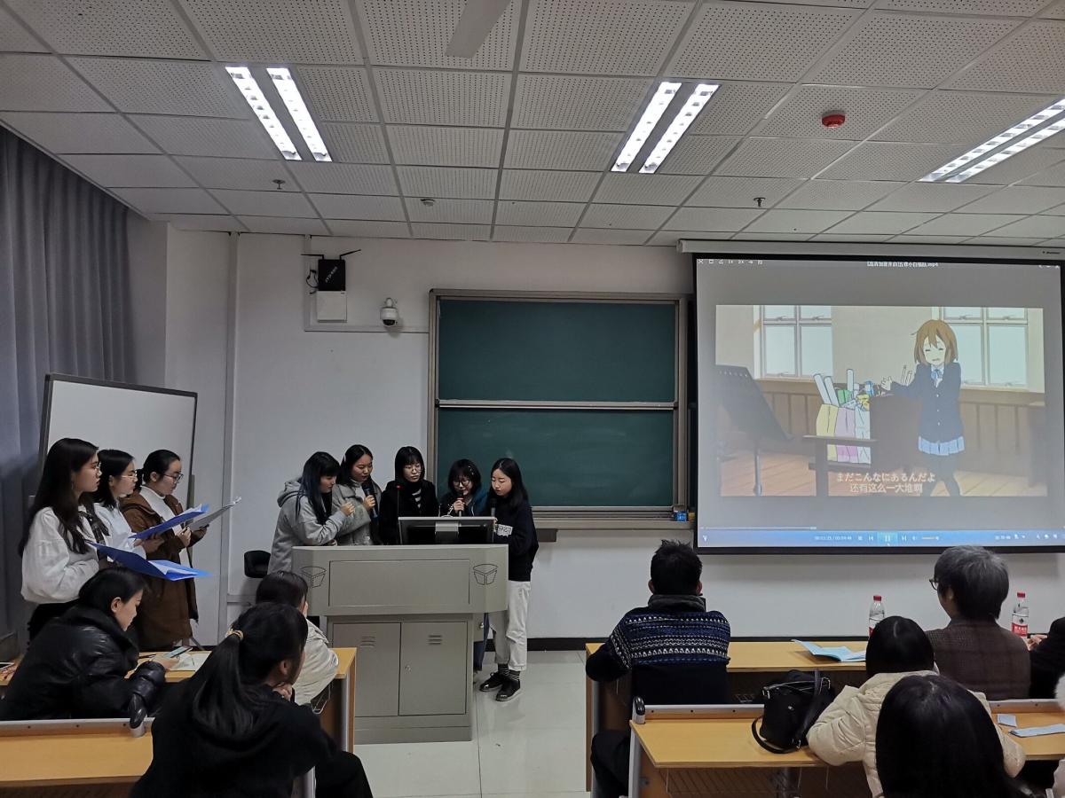 本次配音大赛每组的配音时长为3到5分钟,选手们自选配音素材进行现场配音表演,评委老师们根据选手的语音语调、情感表现力、配音同步性、团队合作能力等进行评分。比赛后,藤木孝则老师和梁秀山老师对比赛进行了点评。他们先是夸奖了同学们对配音素材的优秀消音,后为同学们能够进行现场配音的勇气感到十分欣慰,鼓励同学们保持对日语学习的热情。