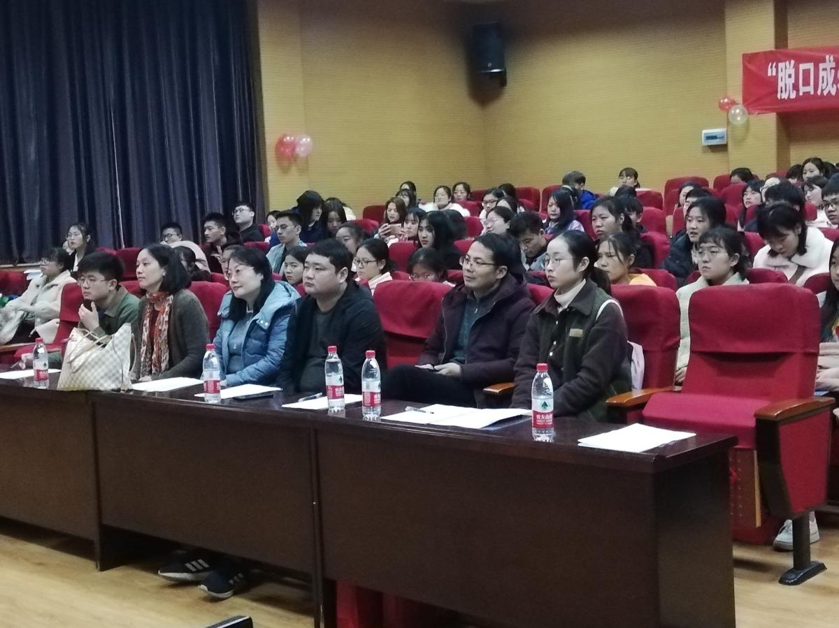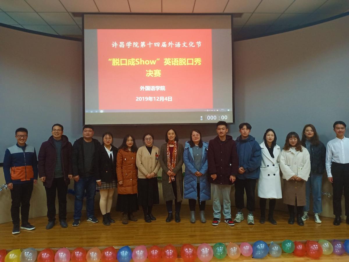 12月4日晚上,乐竞(中国)一站式服务官网外语脱口秀决赛在B合八教室举行。陈化宇等四名老师作为评委与部分学生代表参加了活动。