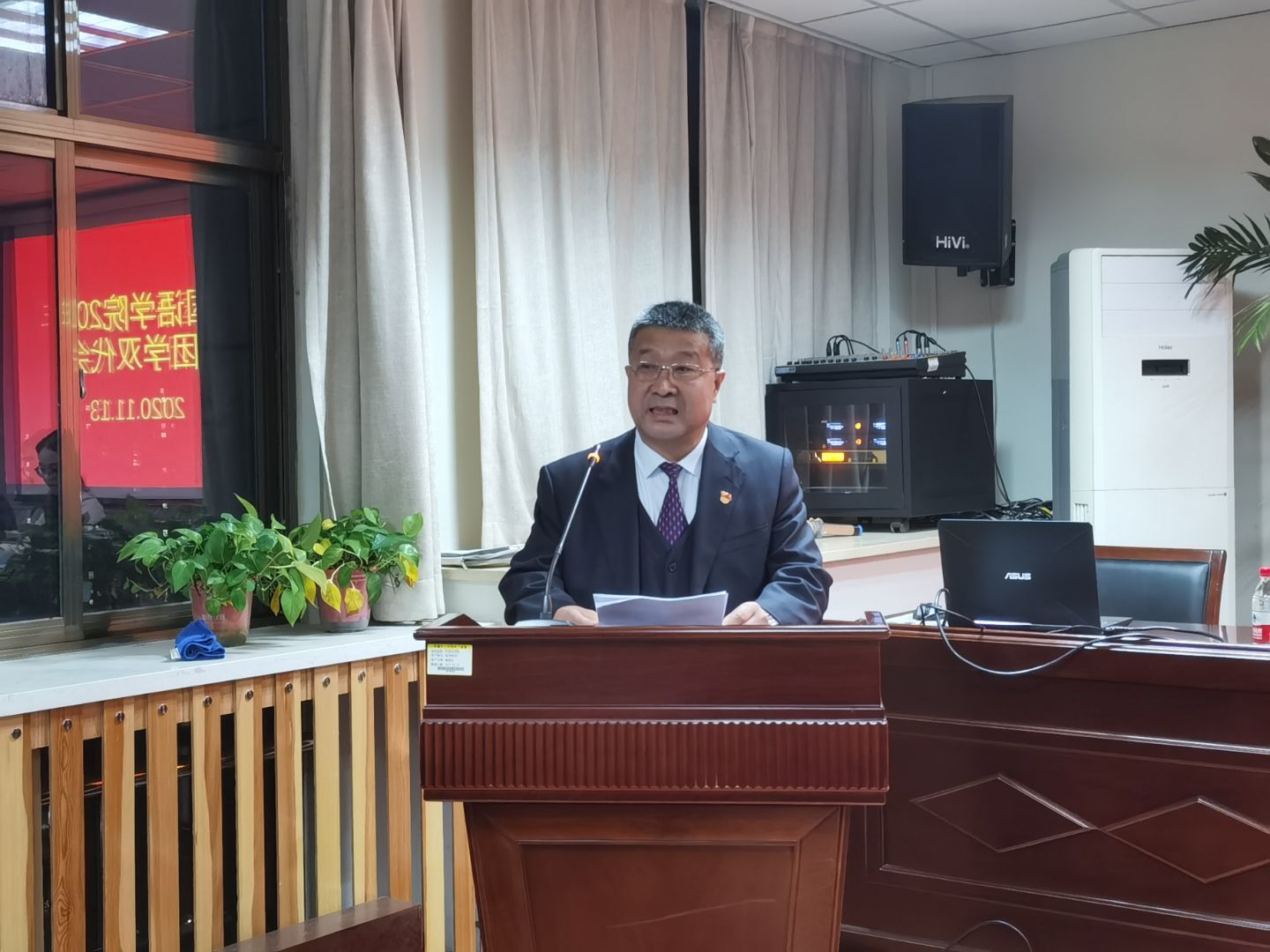 随后,院工会代表老师司涵也向大会致贺辞,大会领导小组成员刘博伟同学宣读了来自许昌学院商学院发来的贺信。党委副书记陈化宇同志宣读大会收到许昌学院团委和其他17个兄弟院系发来的贺信、贺电。