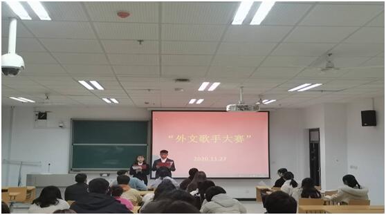 2020年11月27日18:30,由乐竞分团委、学生会和新阳光英语俱乐部共同举办的“音领未live”第十三届外文歌曲大赛于文综楼204教室隆重举行。本次活动旨在丰富同学们的大学生活,激发对英语的学习兴趣,为外文歌曲的热爱者们提供一个展现自己的机会。