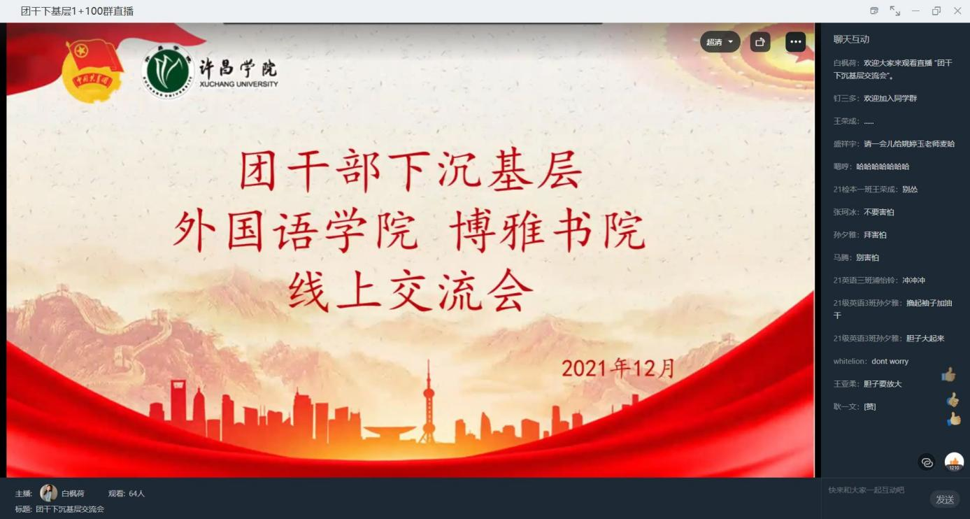 乐竞与博雅书院团干部下沉基层团支部进行线上工作交流