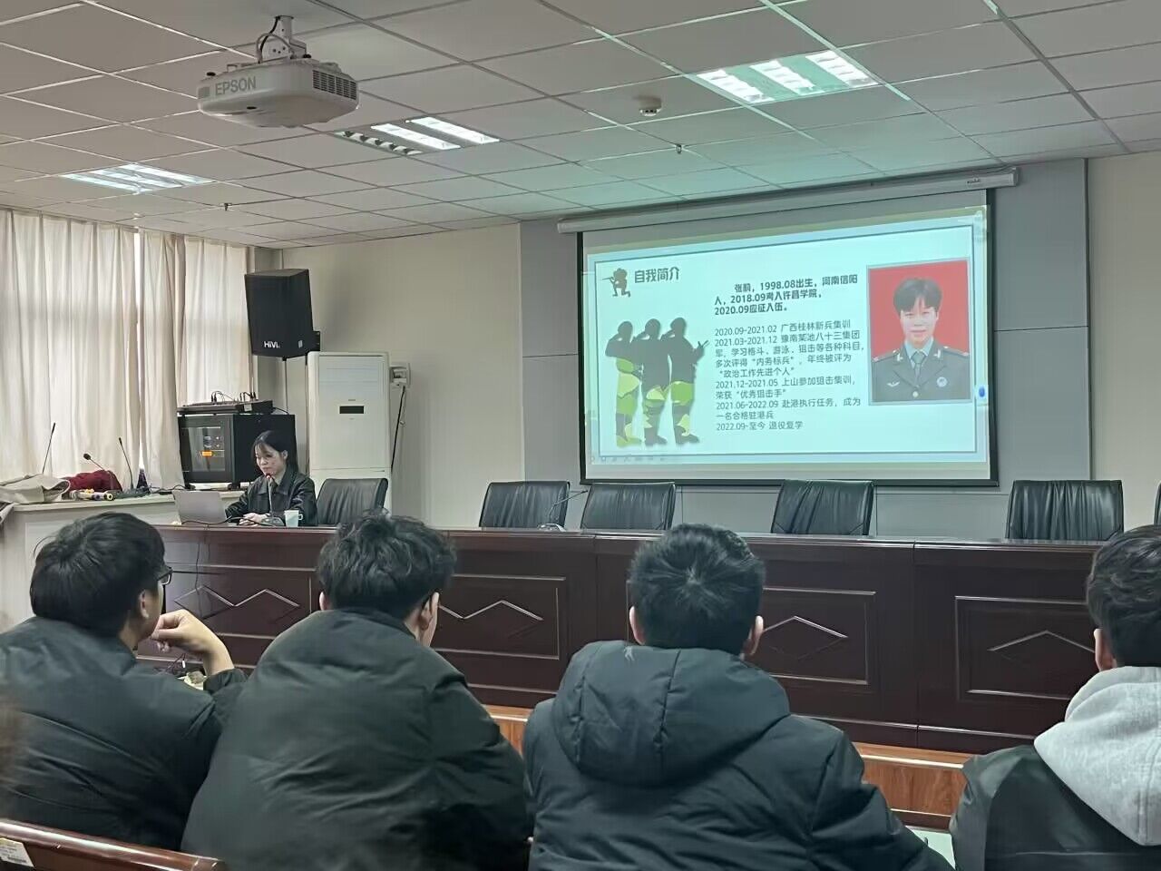为积极鼓励在校大学生投笔从戎,踊跃报名参军,支援国防建设,3月17日,乐竞(中国)一站式服务官网在E-1917会议室举行退伍大学生军旅生涯讲座。202O级退伍大学生张莉以“我的两年戎装”为主题,分享了自己的参军经历。会议由院党委副书记陈化宇主持,学院全体男生参加。