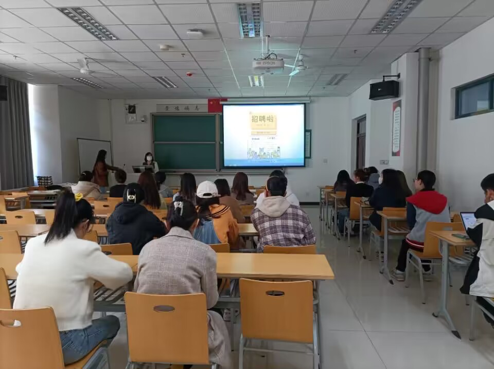 2023年3月3日下午三点,许昌龙祁电子商务有限公司在我校文综楼108教室对乐竞2023届商务英语专业毕业生进行招聘宣讲。