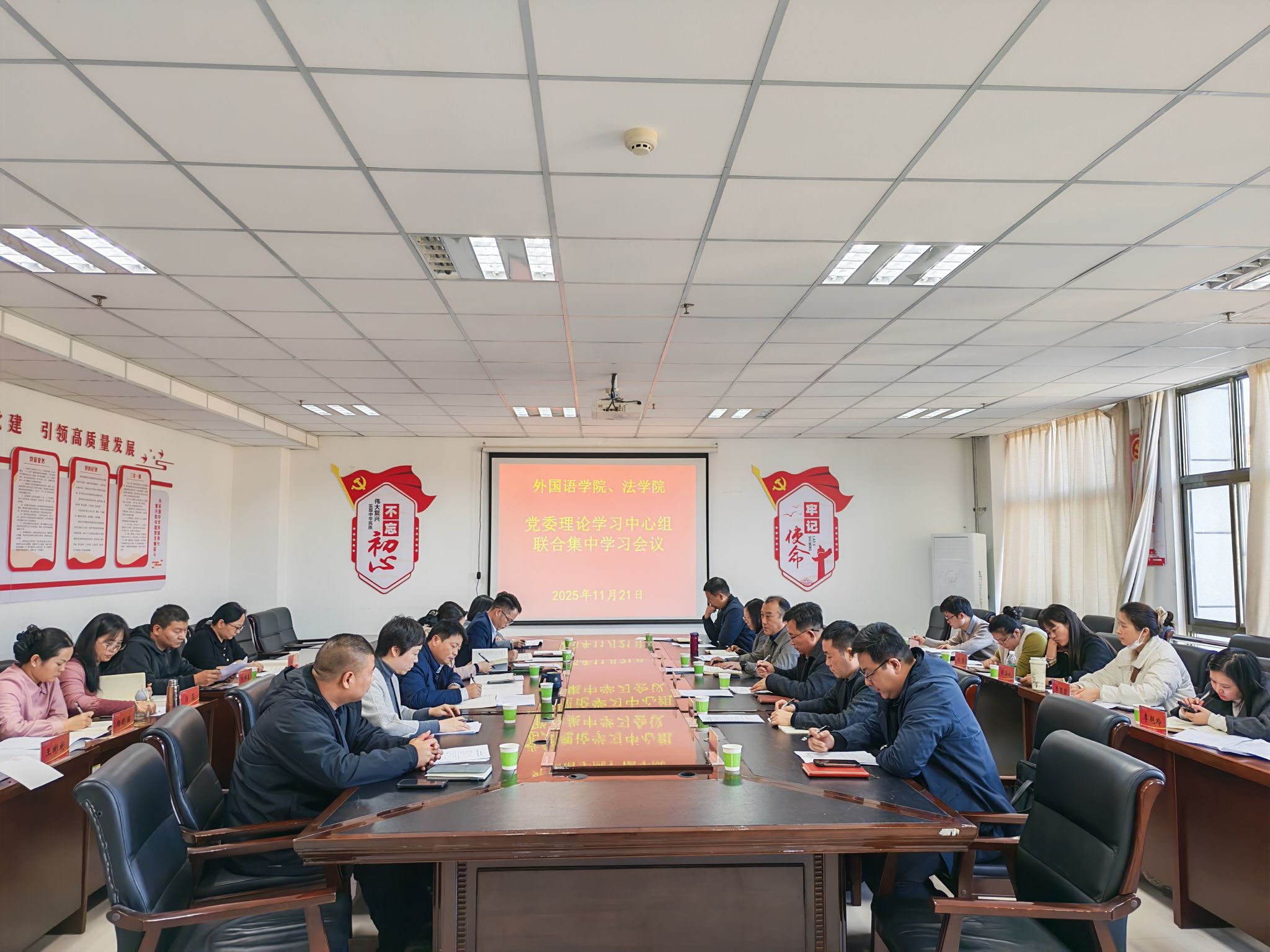 2025年11月21日下午,乐竞(中国)一站式服务官网党委与法学院党委在文科综合楼1225会议室联合举行党委理论学习中心组(扩大)学习会议。校党委宣传部部长王林、副部长樊六辉,校纪委综合办公室主任郭凯,校党委组织部干部科科长张志豪巡听旁听了本次学习会议。乐竞(中国)一站式服务官网和法学院党委理论学习中心组成员参加了会议,法学院副院长孙敬良主持本次会议。