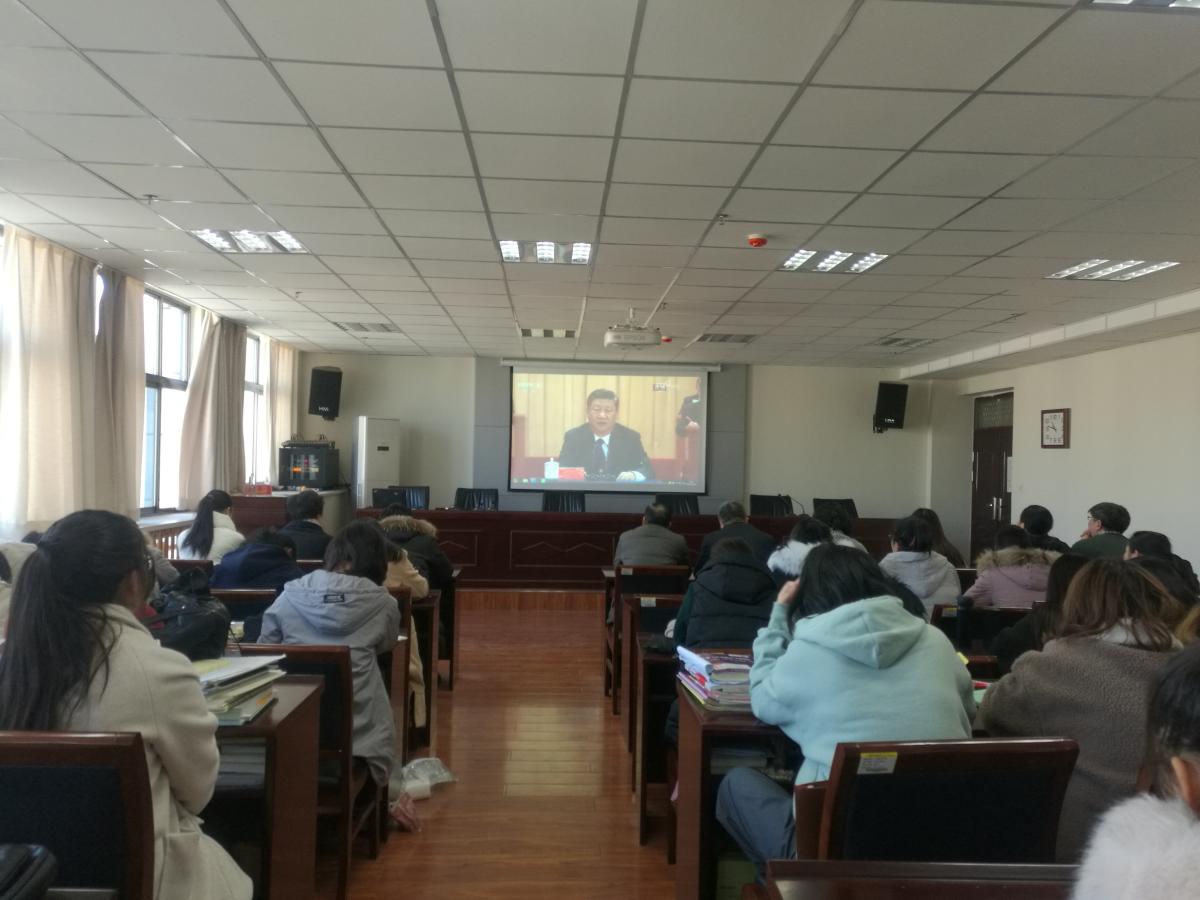 12月18日上午,在文科楼1917会议室,乐竞党总支组织收看“庆祝改革开放40周年”大会,聆听学习习近平总书记的重要讲话精神。学院总支委员、班子成员、党员、教师、入党积极分子等90多人观看了直播大会。