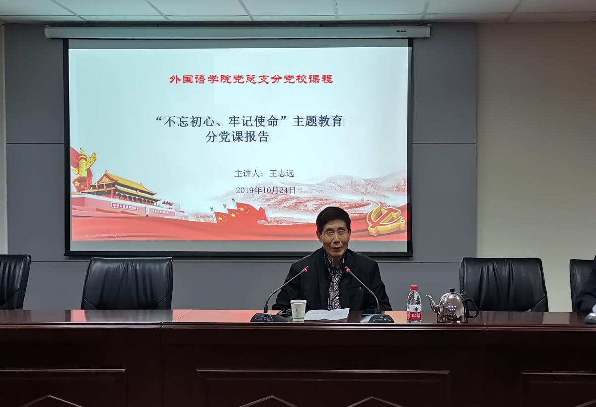 王志远老师从坚定理想信念,树立共产主义远大理想讲起,结合参加主题教育的收获和感受,回顾了中国共产党98年的光辉历程和新中国成立70年来的辉煌成就,阐明了党的初心和使命;王老师引用列宁名言“只有用人类创造的全部知识财富来丰富自己的头脑,才能成为共产主义者。”告诫大家提高个人科学文化素质对于实现人生价值具有重大意义。希望大家要自觉主动学习习近平新时代中国特色社会主义思想,做到真学、真懂、真信、真用。