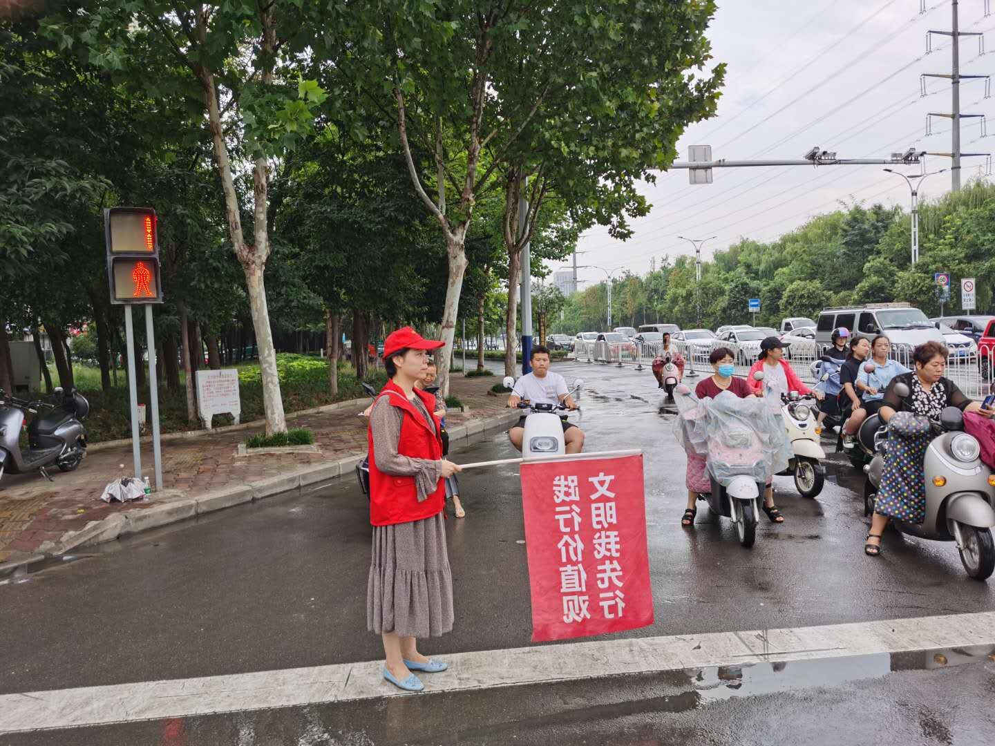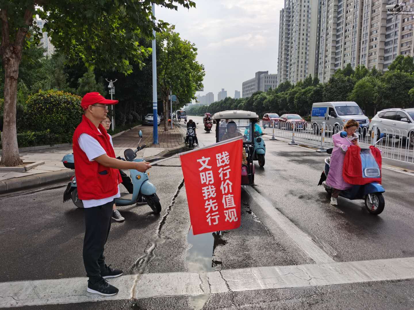 8月14日,乐竞党委依托许昌市创建全国文明城市工作,组织党员教师开展“文明安全交通出行”志愿服务活动,助力我市创建全国文明城市。