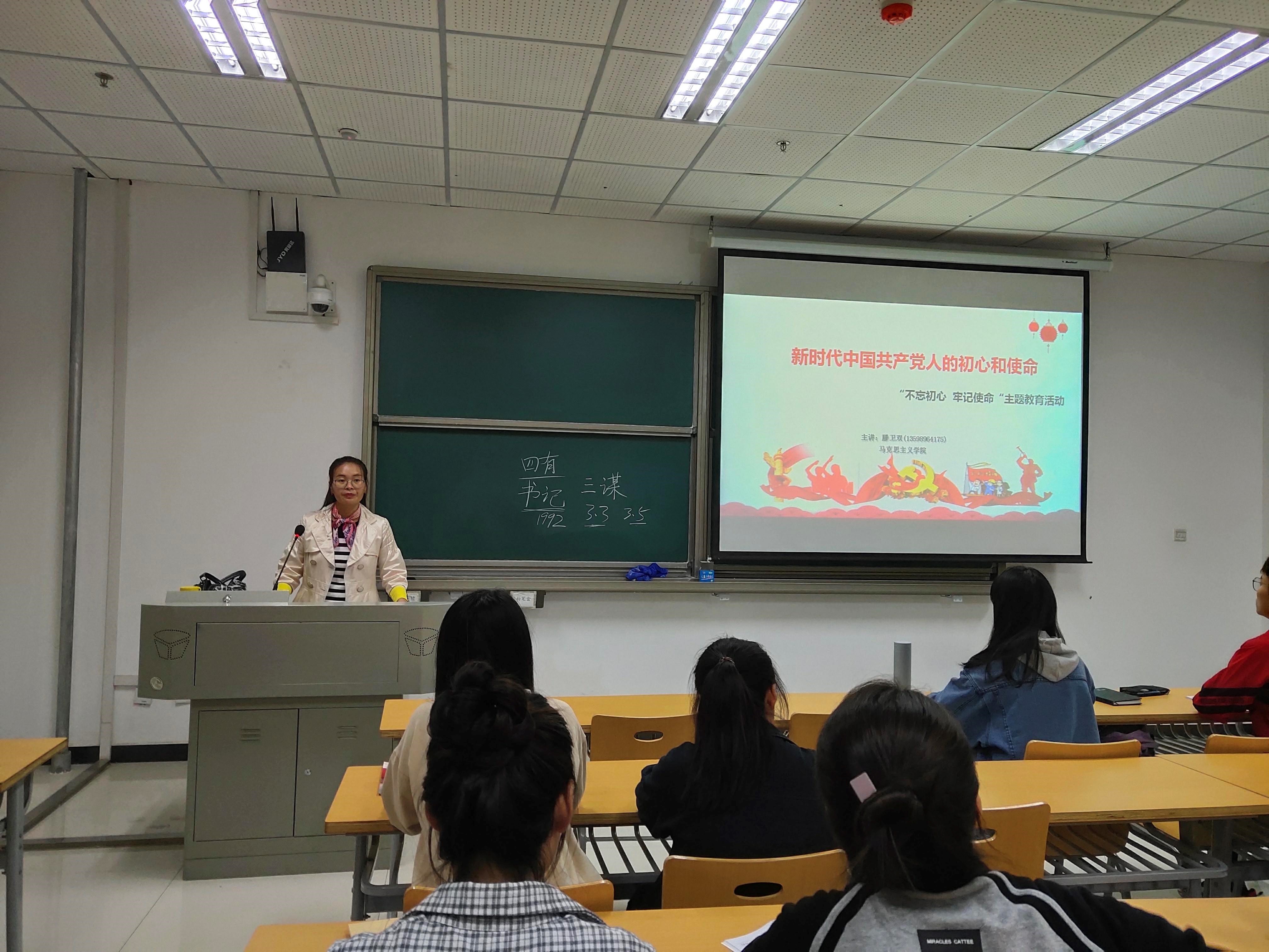 2019年10月22日下午,乐竞于文综楼415开展了“不忘初心、牢记使命”为主题的入党积极分子教育活动。主讲人是马克思主义学院的滕卫双老师。滕卫双老师主要从四个方面细致地讲解了中国共产党人为实现初心和使命的奋斗历程。当代大学生要做一个有理想、有道德、有文化、有纪律的四有青年,要明确不忘初心,牢记使命,这样以后的道路才能走的更为坚定。作为积极分子,也要铭记“不忘初心、牢记使命”这一思想,牢牢把握深入学习贯彻习近平新时代中国特色社会主义思想、锤炼忠诚干净担当的政治品格,为中华民族伟大复兴做贡献。