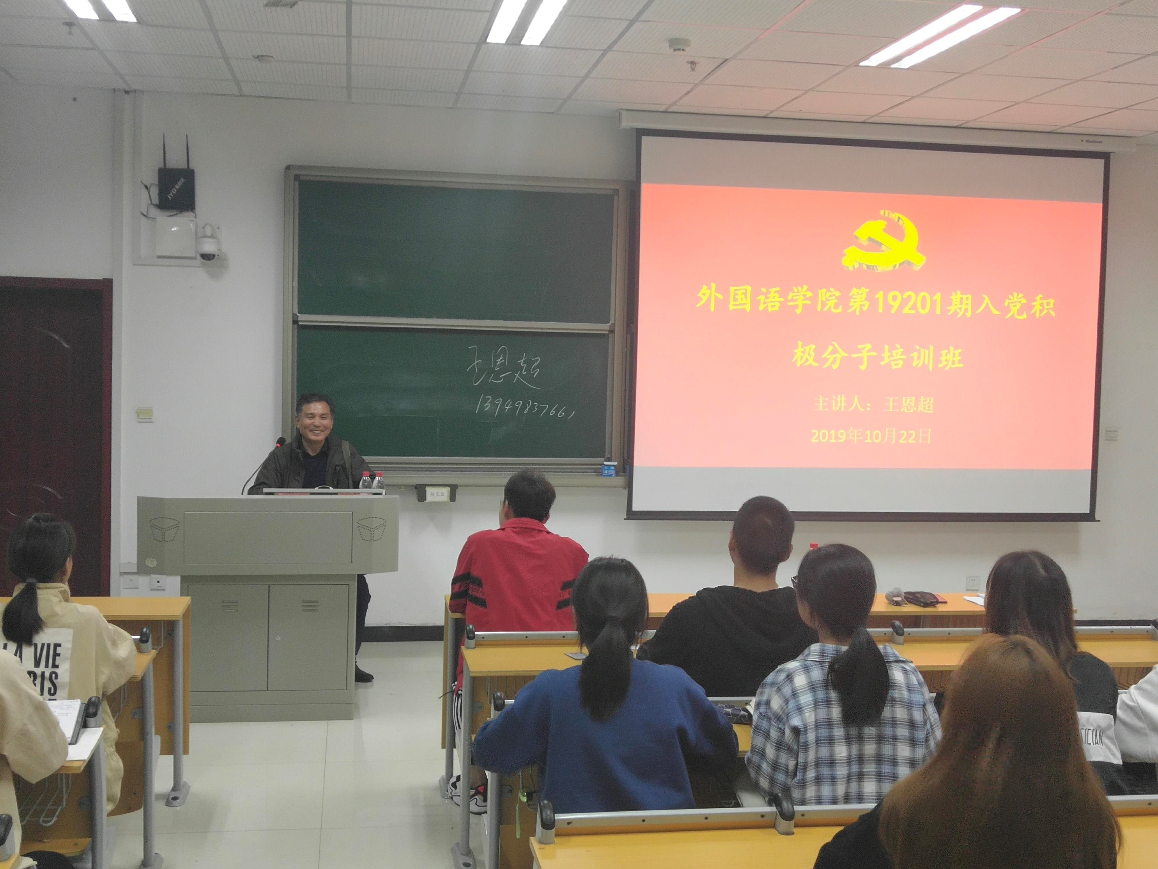 2019年10月24日,乐竞在文综楼416开展19201期入党积极分子培训课,主题为“如何成为一名合格的学生干部”,主讲人是王萌。